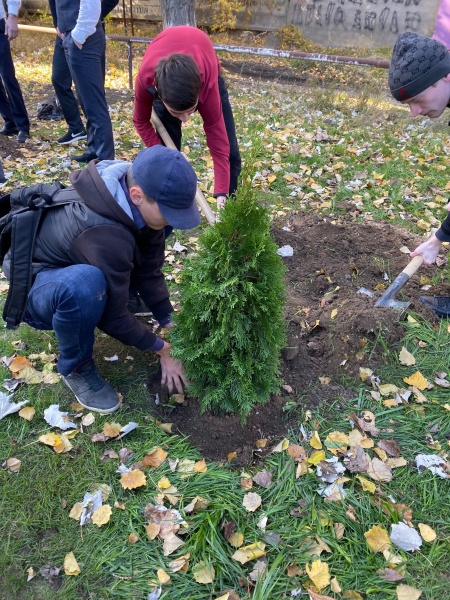 18 ноября студенты участвовали в организации посадки деревьев - «Аллея первокурсников». На каждом дереве будет выведена бирка с указанием курса, группы и отделения .