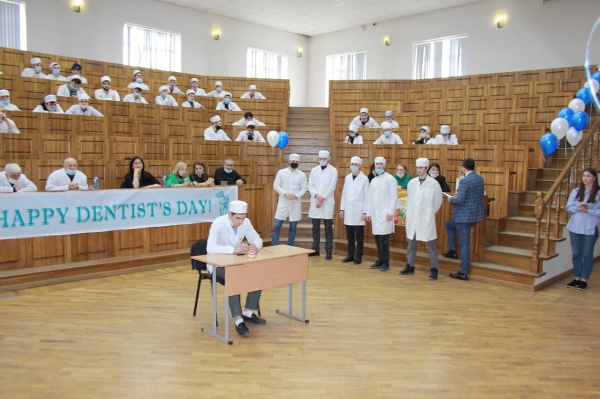 В честь профессионального праздника будущие зубные техники совместно с зав.отделения Гамзатовым Р.С подготовили очень интересное и познавательное мероприятие. Проводились различные викторины. Так же в программу вошла творческо-образовательная часть, в рамках которой студентам и преподавателям поведали факты о зубах и показали мастер класс, а так же очень интересную сценку про «удаление зуба»