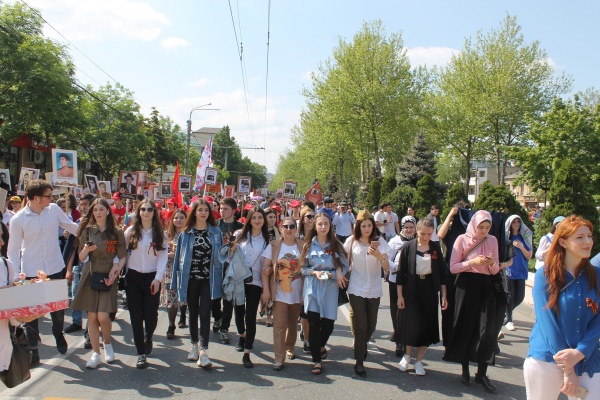 Под звучание фронтовых песен за военными музыкантами, возглавившими «Бессмертный полк», следовали представители регионального отделения Всероссийского военно-патриотического движения «Юнармия», воинские подразделения Махачкалинского гарнизона, парадные расчеты.