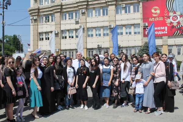 В День Победы, активисты и волонтерское движение "Панацея" Медицинского колледжа ДГМУ во главе с педагогом-организатором Алиевой Т.М. приняли участие в шествии в рамках Всероссийской акции «Бессмертный полк», которое проходит в Махачкале уже в четвертый раз.