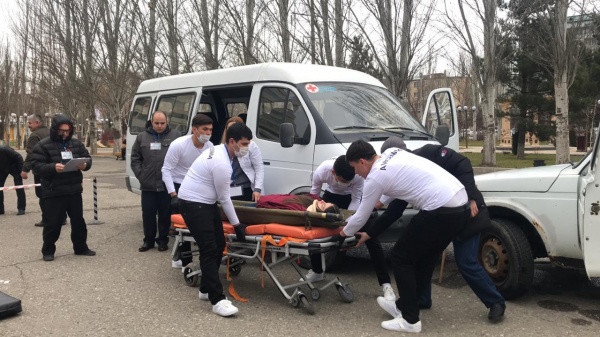 Третье конкурсное задание – интерактивная командная задача «Дорожно-транспортное происшествие». Этот этап проходил во дворе ДГМУ. В ходе этого этапа участникам необходимо было оказать первую помощь, сортировать больных, определять очередность оказания помощи.  Жюри олимпиады сформировано из представителей профессорско-преподавательского состава ДГМУ и представителей медицинских вузов РФ. Оценка конкурсных заданий осуществлялась в соответствии с утвержденными критериями. Победители и призеры олимпиады определялись по лучшим баллам выполнения конкурсных заданий.