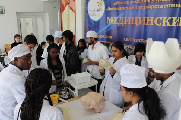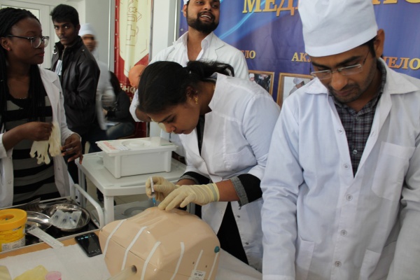 Иностранные студенты ДГМУ на практическом занятии тренируют изученые навыки