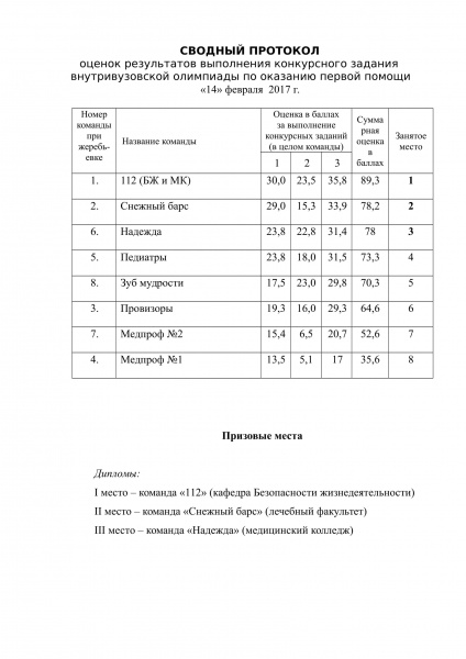 Олимпиада по оказанию первой помощи