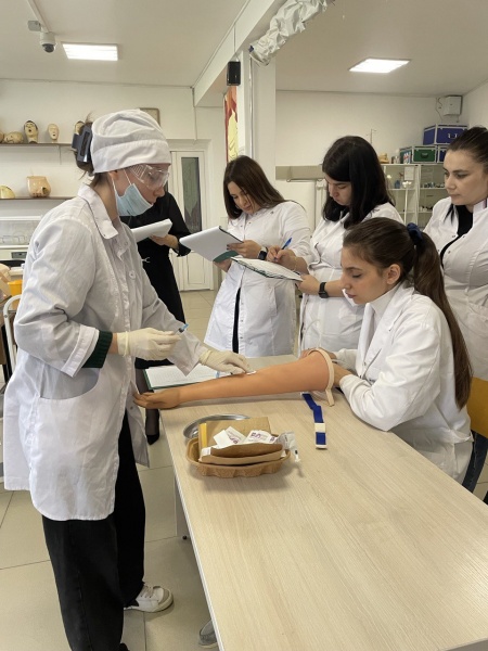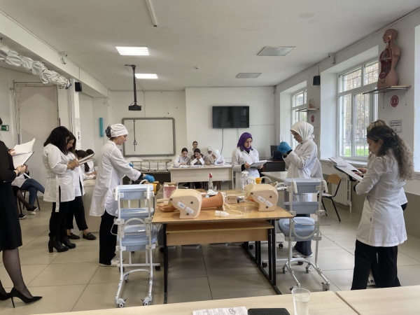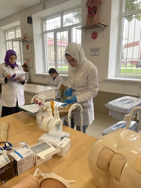 Будущие медицинские сестры демонстрировали практические навыки по выполнению манипуляций сестринского ухода.
