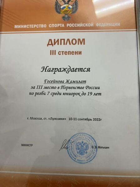 Студентка 1 курса специальности "Лечебное дело" Медицинского колледжа ДГМУ Госейнова Жамилат заняла   3 место.