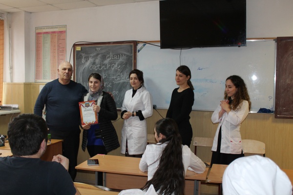 Директор поздравляет с первым местом Магомедову Зарифат, студентку 3 курса отделения "Лечебное дело"