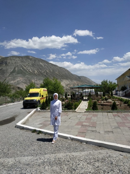 Малаева Патимат Ахмедовна ,студентка 4 курса Лечебного отделения ,проходит преддипломную практику  в ГБУ РД «Кизлярской ЦРП»,работает на скорой .