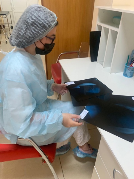 Бутаева Залина 4 курс 2 группа проходит практику в ГБУ РД "Центре скорой медицинской экстренной помощи", в нейрохирургисеском отделении, помогает с разбором рентгеновских снимков грудной клетки у пациентов с Covid-19