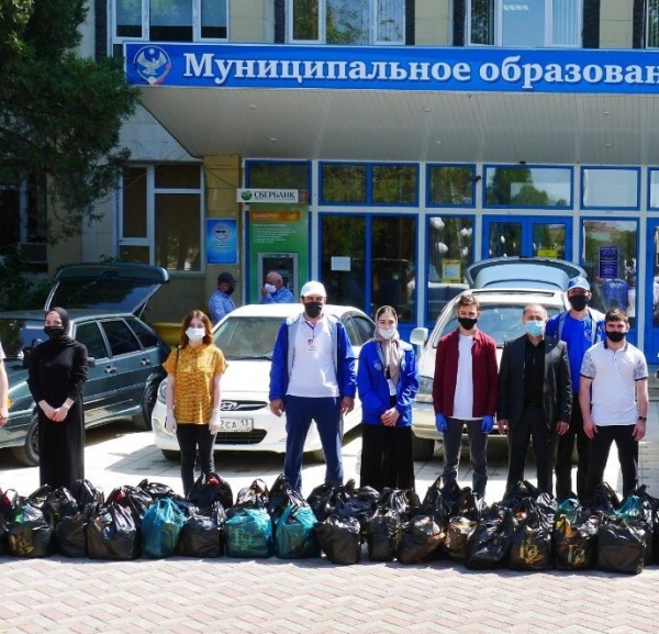 Амирханова Наида Амирхановна, 4 курс 6 группа «сестринское дело» — волонтёр организации "Единая гвардия" г.Кизилюрт, приступает к раздаче продуктовых пакетов. Фотография сделана совместно с главой г. Кизилюрта Малика Патахова.Он поблагодарил студентку, за проделанную работу .