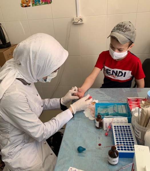Гусейнова Айшат Гусейнова 4 курс 6группа сестринское отделение. Проходит преддипломную практику в ГБУ РД "Детская поликлиника 5". Помогает Лаборантам собирать анализы.