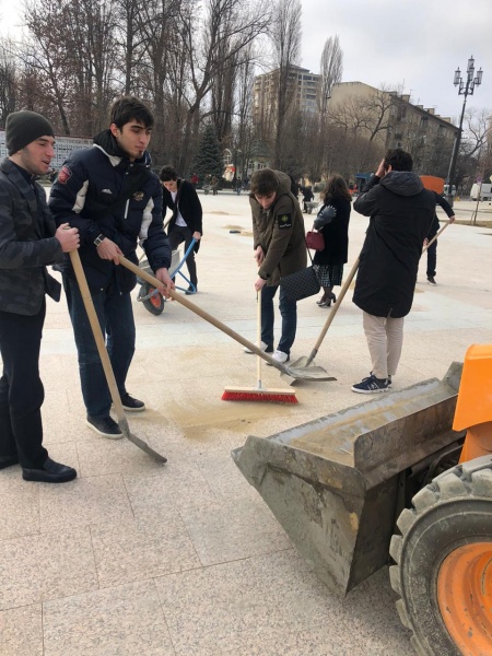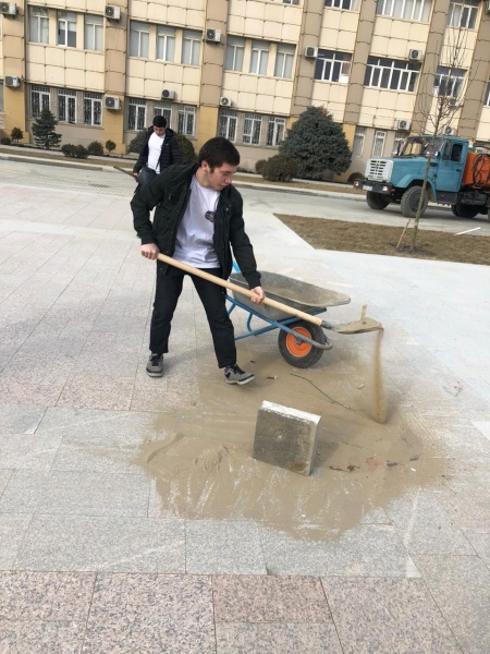 На центральной площади Махачкалы Махачкалинцы принимают участие в укладке гранита. К десяткам рабочих подрядной организации «Армада», занимающейся ремонтом главной площади столицы, присоединились студенты Медицинского Колледжа При ДГМУ по инициативе зам директора по воспитательной части Тамиллой Маликовной и педагогом организатором Мариям Мусалавовной .