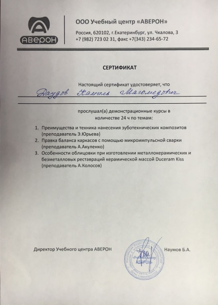 Второй этап международного конкурса «Шаг вперед», проходил на базе учебного центра «АВЕРОН» в городе Екатеринбурге 1-2 декабря 2016 г., в котором принимал участие студент 3 курса отделения «Стоматология-ортопедическая» Гасанбеков Исрафил Джабраилович.