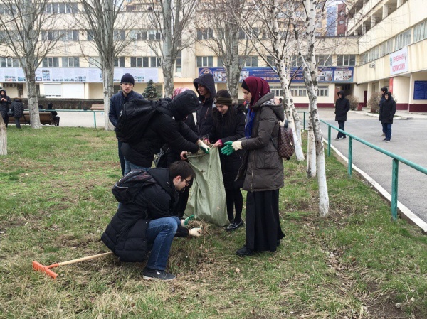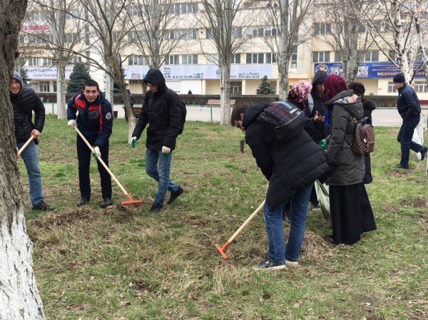 Сегодня на территории ДГМУ на проспекте Шамиля 46 студенты Медицинского колледжа приняли участие в городском субботнике.