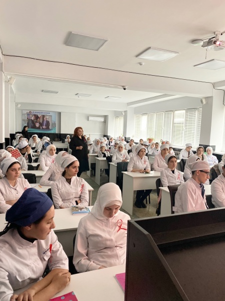 В честь этого дня наш колледж провёл открытый урок под руководством преподавателя Айзанат Магомедшапиевны, где каждому из студентов были надеты ленточки красного цвета.