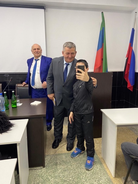 Среди заданных вопросов он  выделил вопрос студентки 4 курса 1 группы сестринского дела Гереевой Карины "Как к вам относится ваш отец"и студента 2 курса 4 группы сестринского днла  Ибрагомова Ибрагима " Что самое сложное в спорте" , за эти вопросы студенткы получили его книгу .